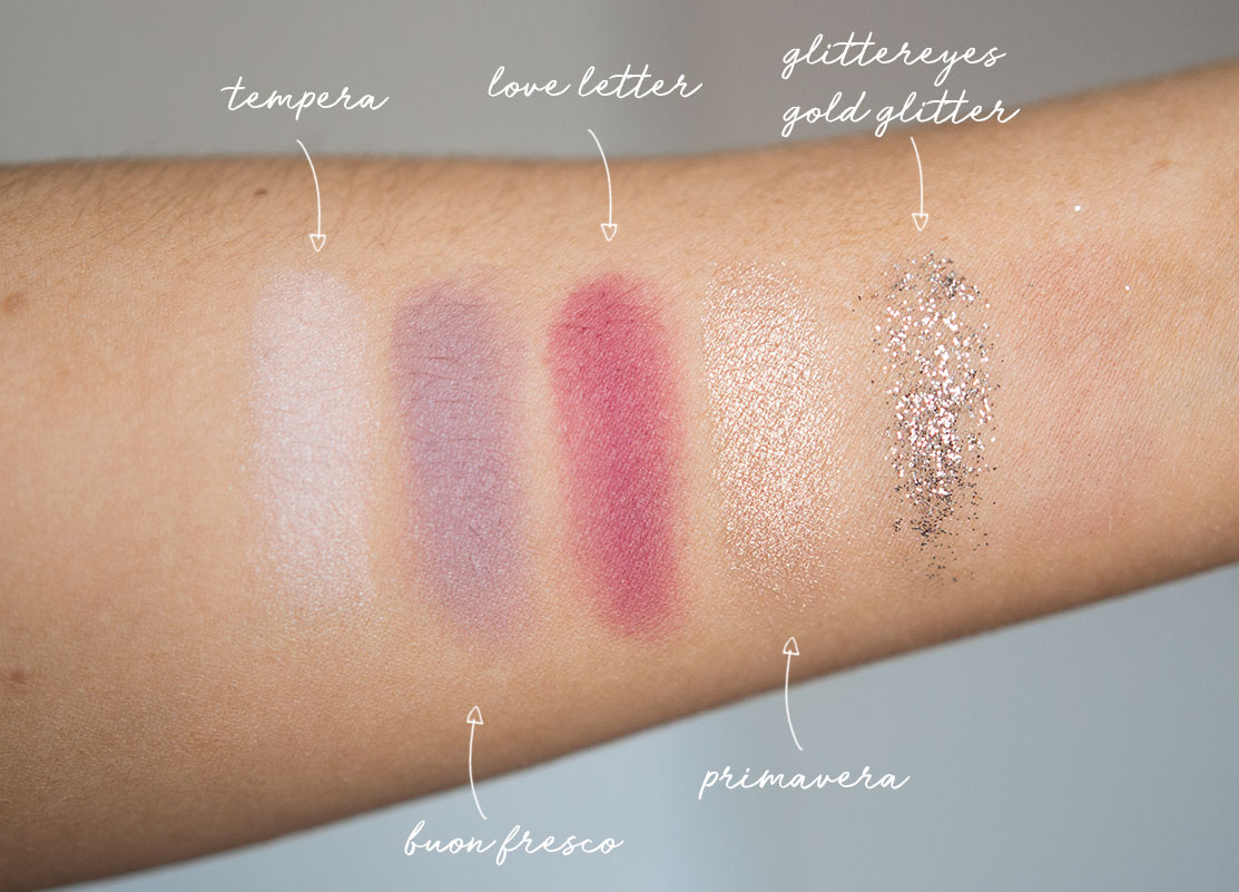 On my eyes, the palette I went for is the Anastasia Beverly Hills Modern Renaissance, which I’m sure most people own. If not you need it because it’s beauuuuutiful! To start off with, I used the shade ‘Tempera’ to highlight my brow bone which is a beautiful frosty white that gives just the right amount of glow. In the crease and under the lower lash line, I used the shade ‘Buon Fresco’ with a fluffy crease brush. I then applied the shade ‘Love Letter’ in my outer V area as well as in the inner corner of my lid. I also took ‘Love Letter’ under my lower lash line just to bring it together with my outer V. I was then left with the centre of my lid to fill and I applied the shade ‘Primavera’ all over it which is one of my favourite shades to use for a lil pop of colour!