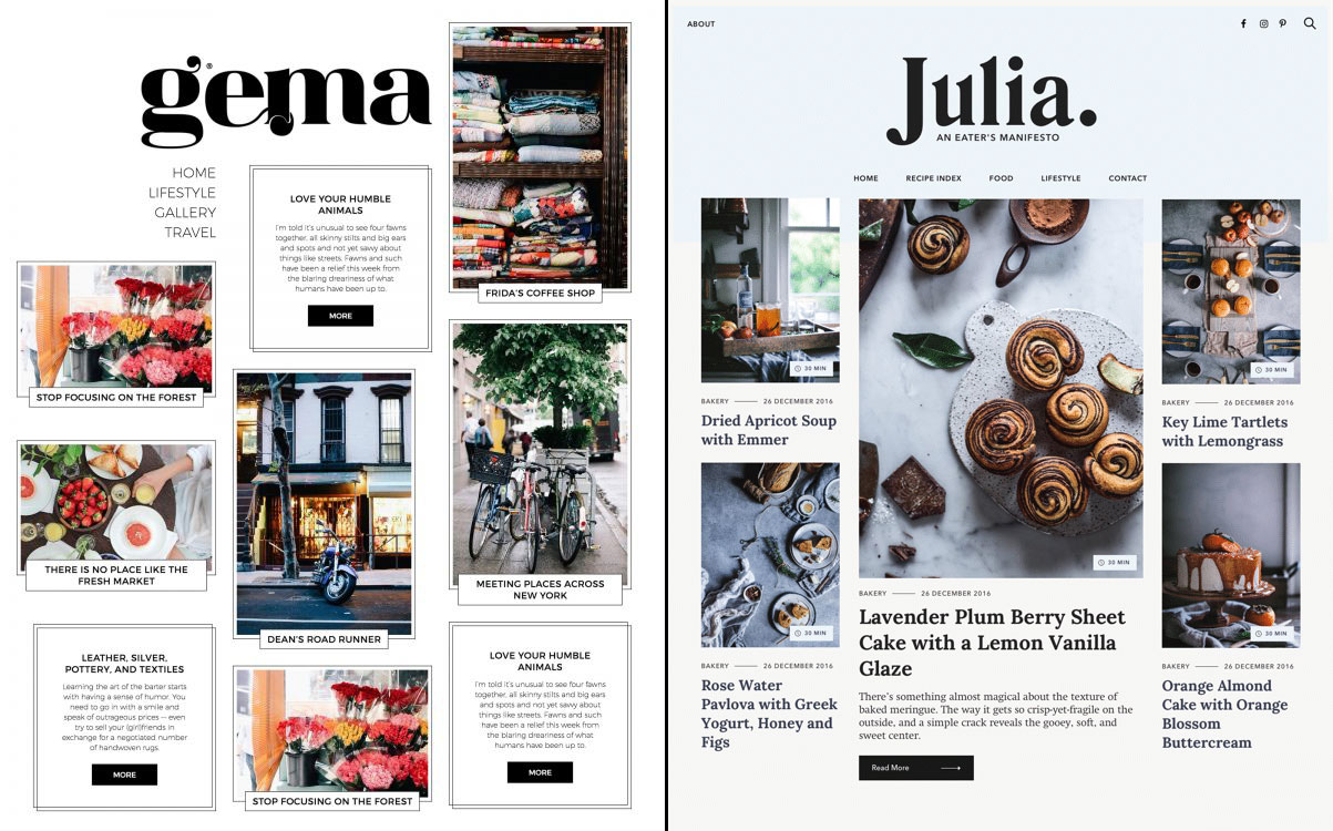 My two favourites include Gema, not just because of the name 😉 – and also Julia, two beautiful, sophisticated layouts which you can see below.