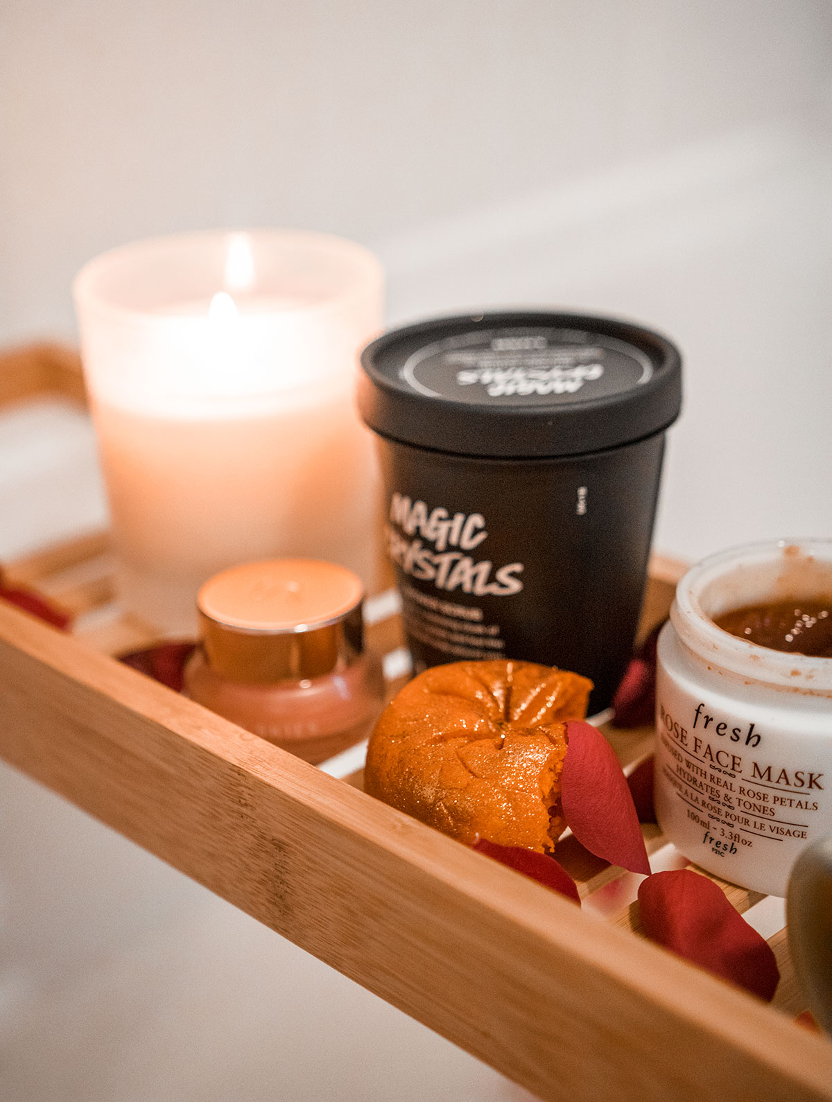 You guys know by now how much I adore a cosy hot bubble bath. I couldn’t resist sharing my current Autumn evening favourites with you all. I love a good bath all year round but there’s definitely something extra cosy about them when the cold weather and darker evenings hit. I’m all about the scent, hydration and exfoliation lately, as my skin gets drier the closer we creep towards winter – so here’s a few essentials I think every girl needs in her bathroom…