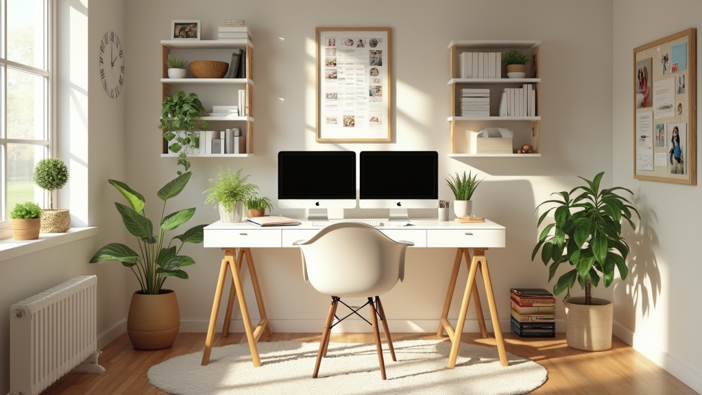 This approach not only enhances aesthetic appeal but also helps reduce stress and improve air quality, making the home office a more pleasant space to spend time in.